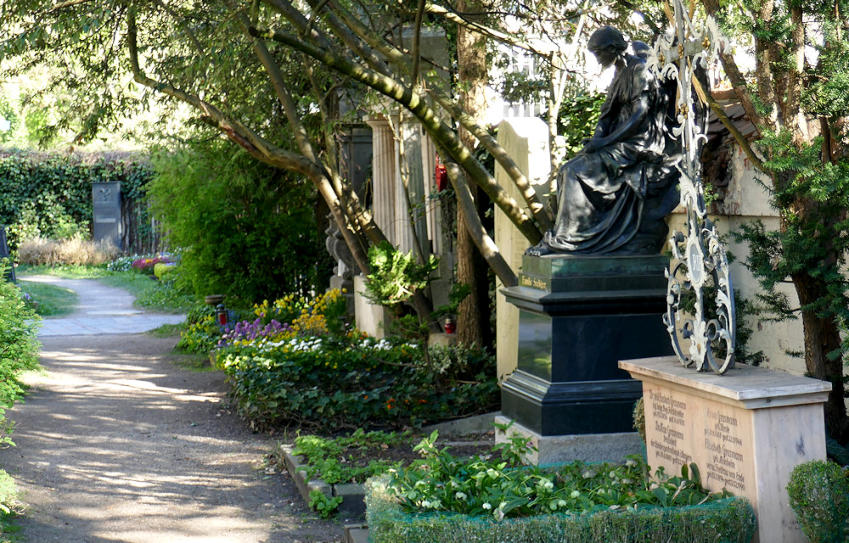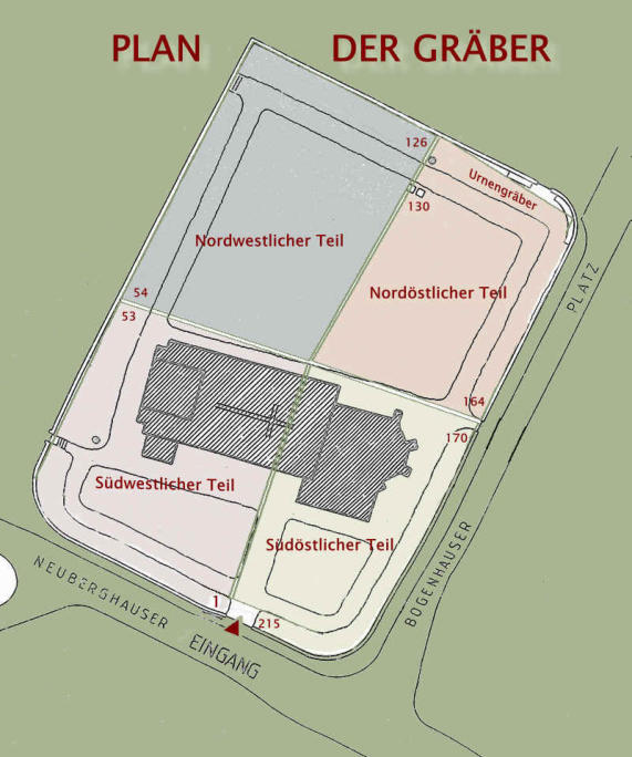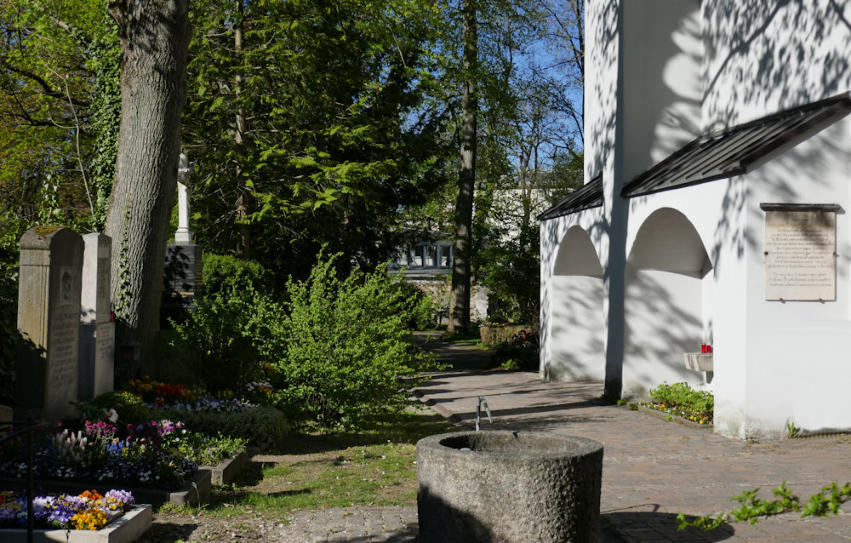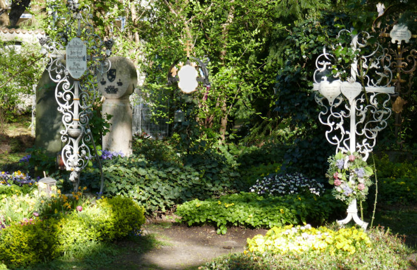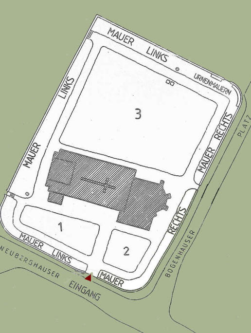 Blick entlang der westlichen Friedhofsmauer in Richtung Norden